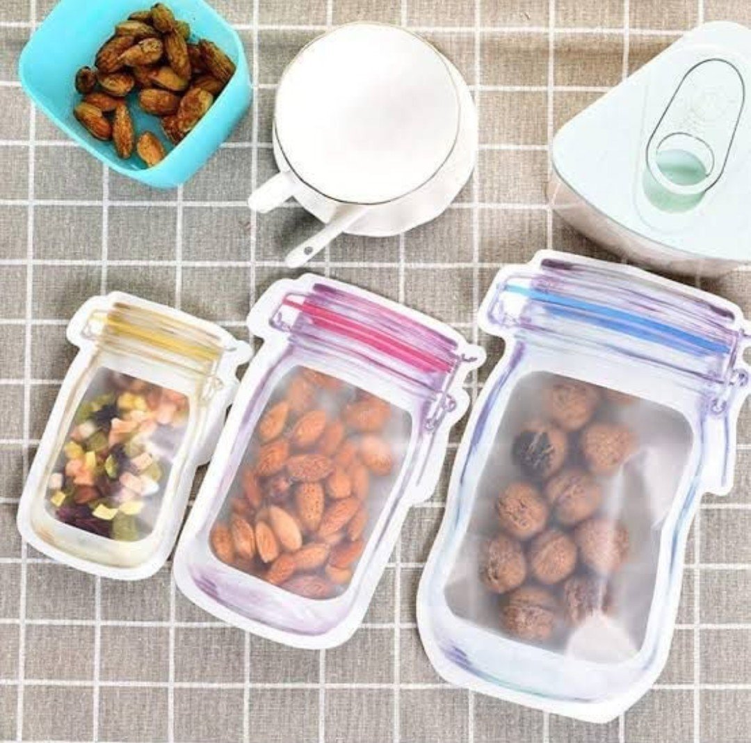 Efficiently store and transport your food with this set of 3 reusable, transparent mason jar pattern zipper bags. Featuring an airtight seal and leakproof design, these bags are perfect for travel, picnics, and camping. Stand-up ability makes them ideal for storing a variety of foods.